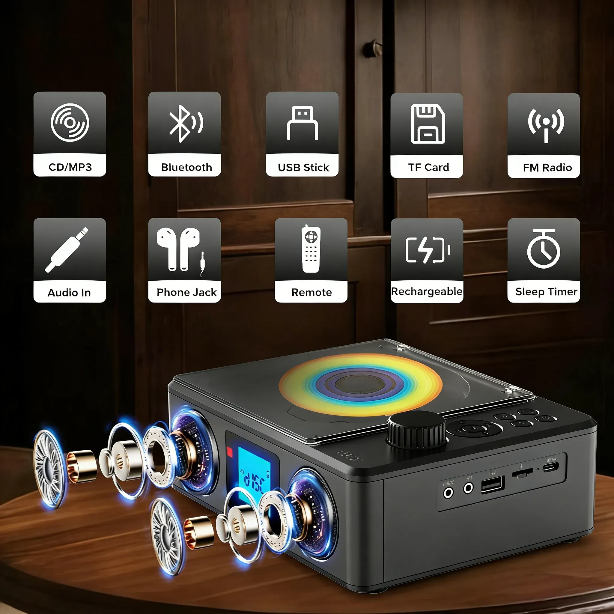 - Multi-Format Playback – Supports CD, CD-R, MP3, Audio Books, USB drive, TF card, and Audio In for versatile music options.